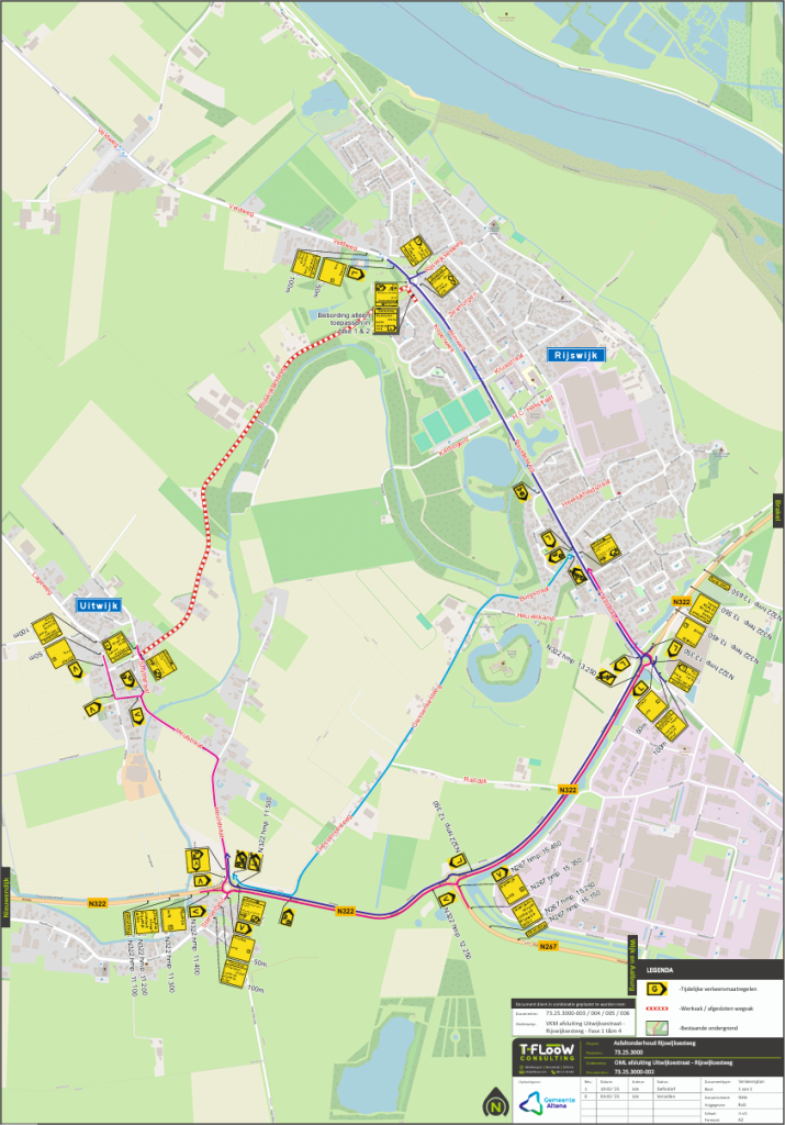 Op dinsdag 6 mei start aannemer Mouwrik Waardenburg met de reconstructie werkzaamheden in de Uitwijksestraat te Uitwijk en Rijswijksesteeg te Rijswijk.